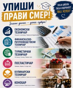 Министарство просвете објавило је План уписа у средње школе за школску 2026/2027. годину. Економско-угоститељска школа „Слободан Минић“ у Аранђеловцу и ове школске године нуди разноврсне образовне профиле, прилагођене интересовањима ученика и потребама савременог тржишта рада. Ученицима су на располагању следећи смерови: Кроз квалитетну наставу, практичну обуку и сарадњу са бројним
